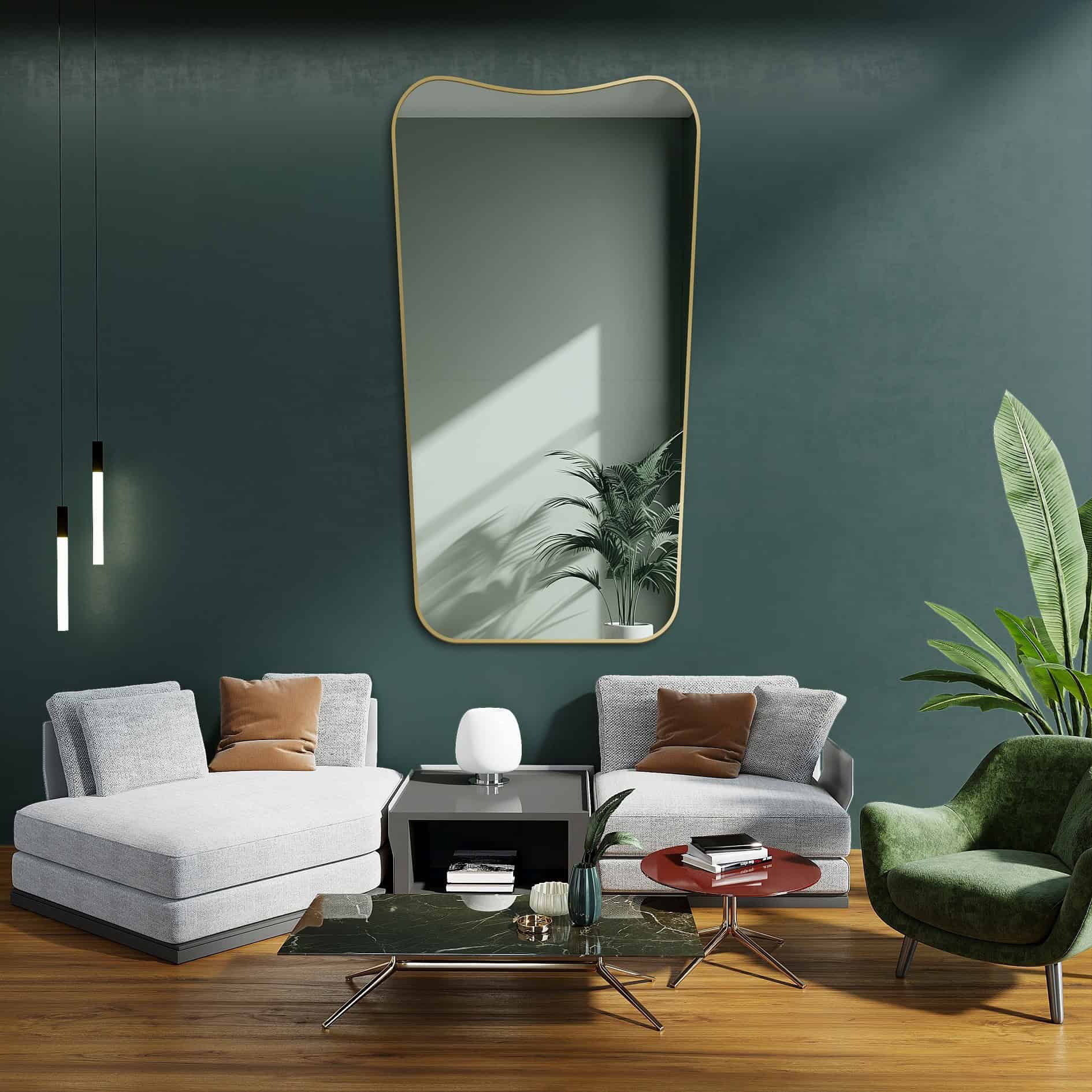 W przypadku wnętrza, w którym dominują lub przewijają się zaokrąglone kształty, świetnie sprawdzą się lustra organiczne. Podobnie jak ten kolor nawiązują do natury. Dodatkowo są dekoracyjne, więc idealnie pasują do salonu.