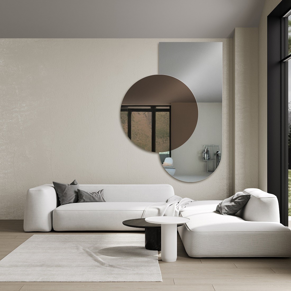 Sprawdzą się geometryczne lustra – prostokąty, kwadraty, koła, owale i półowalne lustra portalowe. Mogą to być także kształty asymetryczne czy dzielone, jak również lustra łączące dwie tafle, także w różnych kolorach.