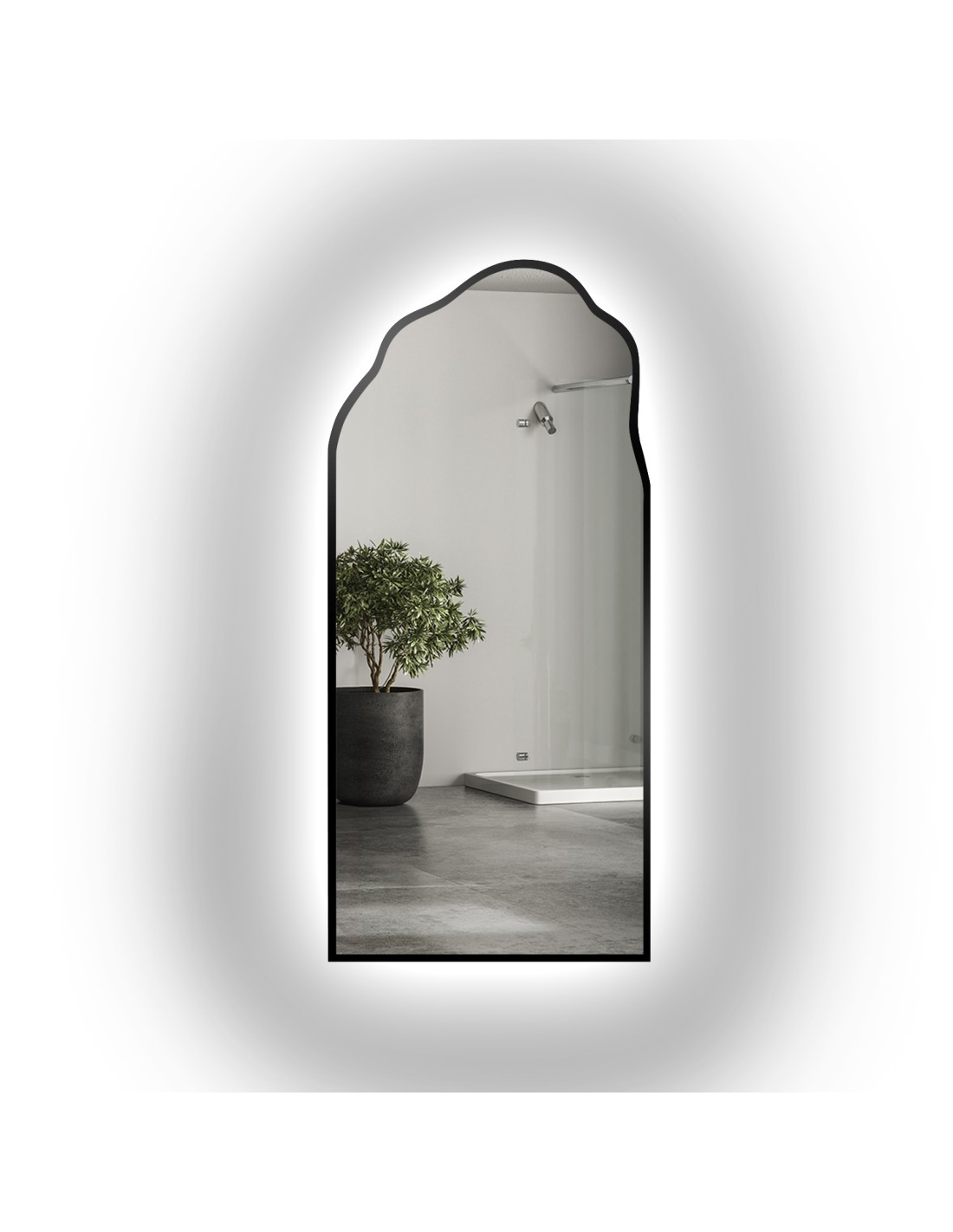 Półowalne lustro o organicznym kształcie w ramie z podświetleniem - AURO W RAMIE LED 1