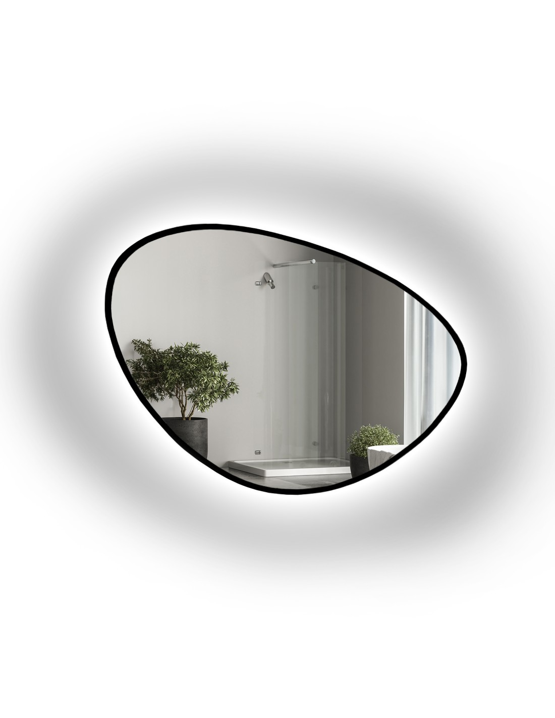 Lustro o nieregularnym kształcie w ramie z podświetleniem- OBSYDIAN W RAMIE LED