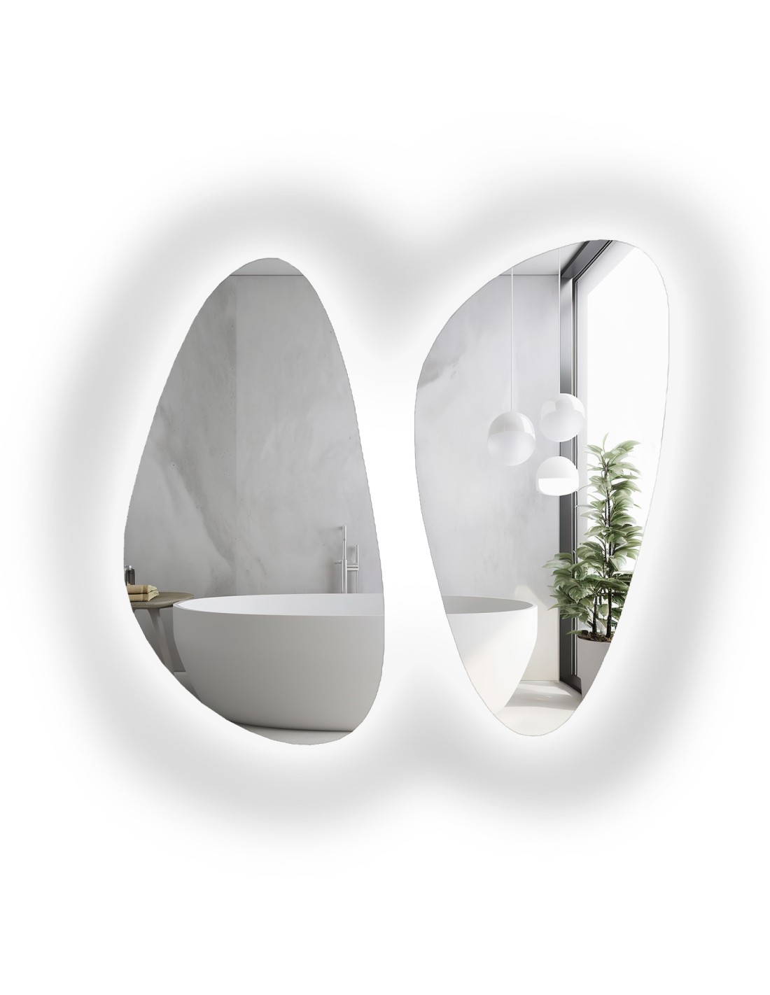 Zestaw dwóch luster o nieregularnym kształcie z podświetleniem - SELENIT LED