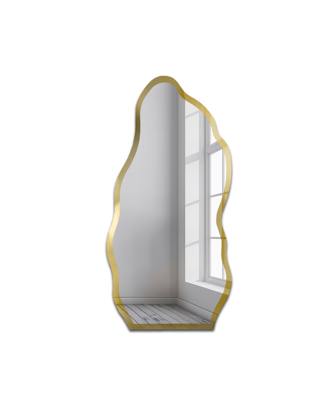 Nieregularne lustro w ramie złoty połysk - AURO II SHINE