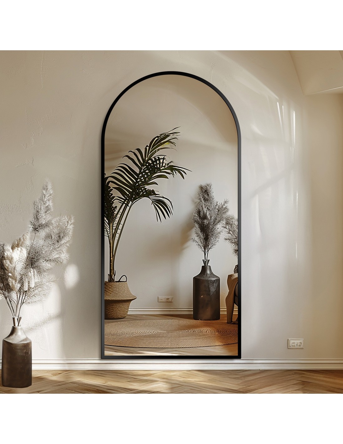 Lustro półowalne w matowej czarnej ramie mdf - BERDO - kolor ramy do wyboru