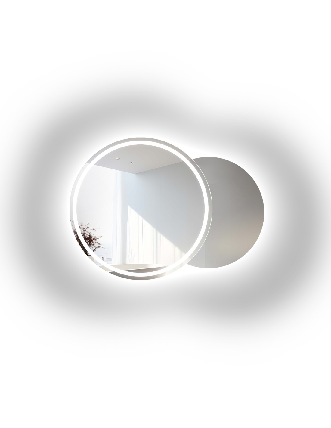 Równomierne światło otula taflę lustra, podkreślając jego formę i dodając przestrzeni wyjątkowej atmosfery. Energooszczędna technologia LED łączy efekt wizualny z funkcjonalnością najwyższej klasy.
