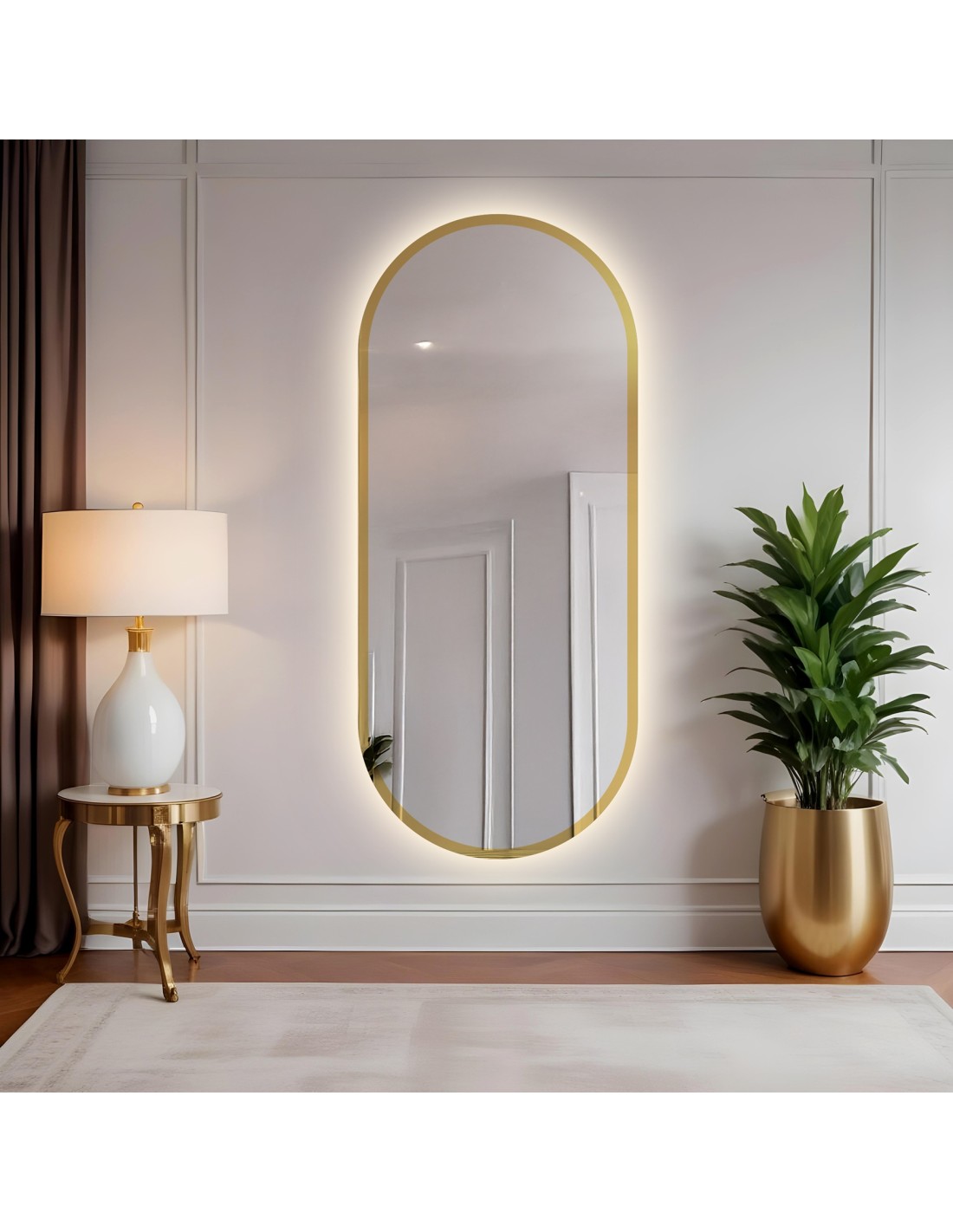 Owalne lustro w ramie złoty połysk z podświetleniem - BONITA LED