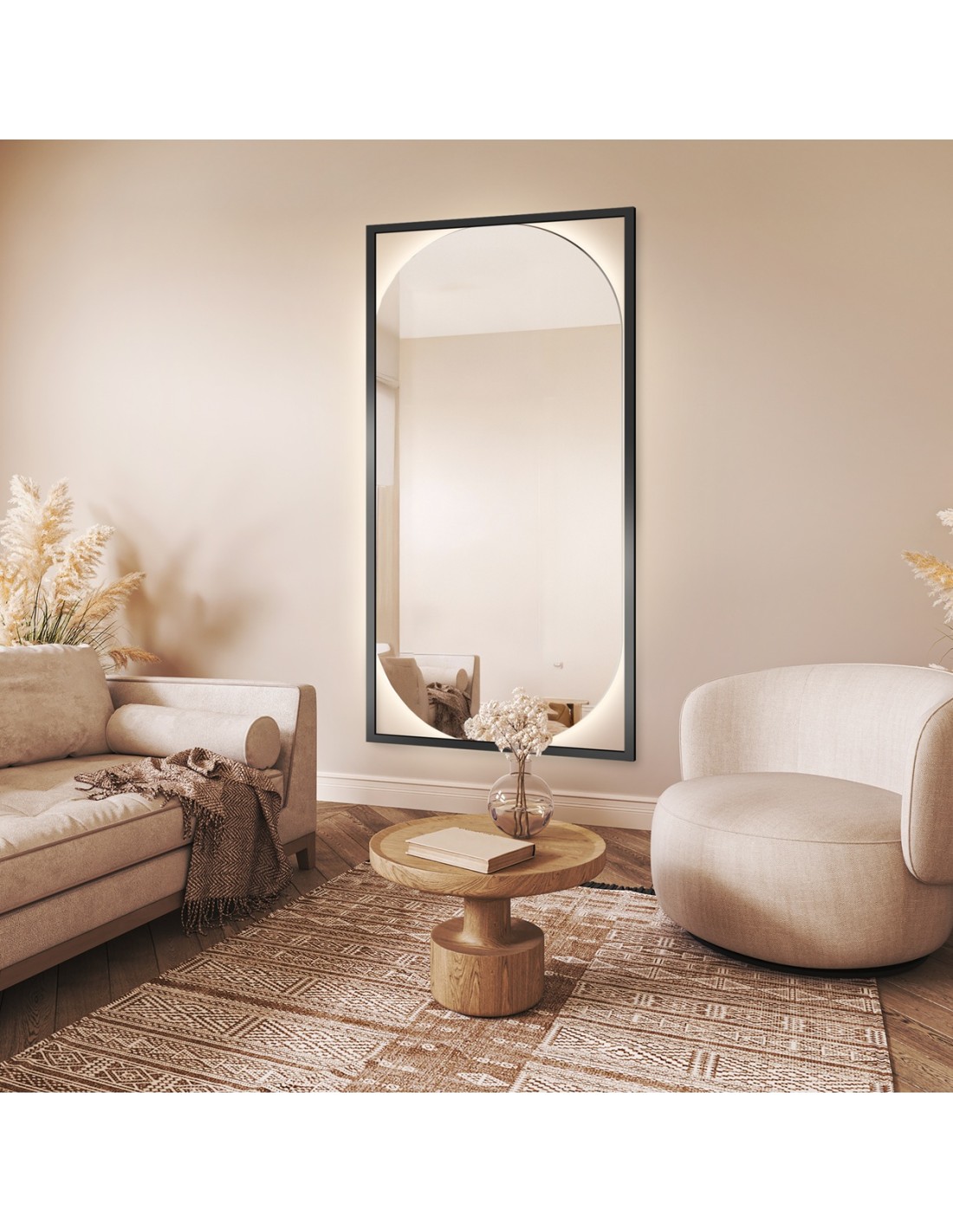 Nowoczesne lustro owalne w drewnianej ramie z podświetleniem- RENA LED