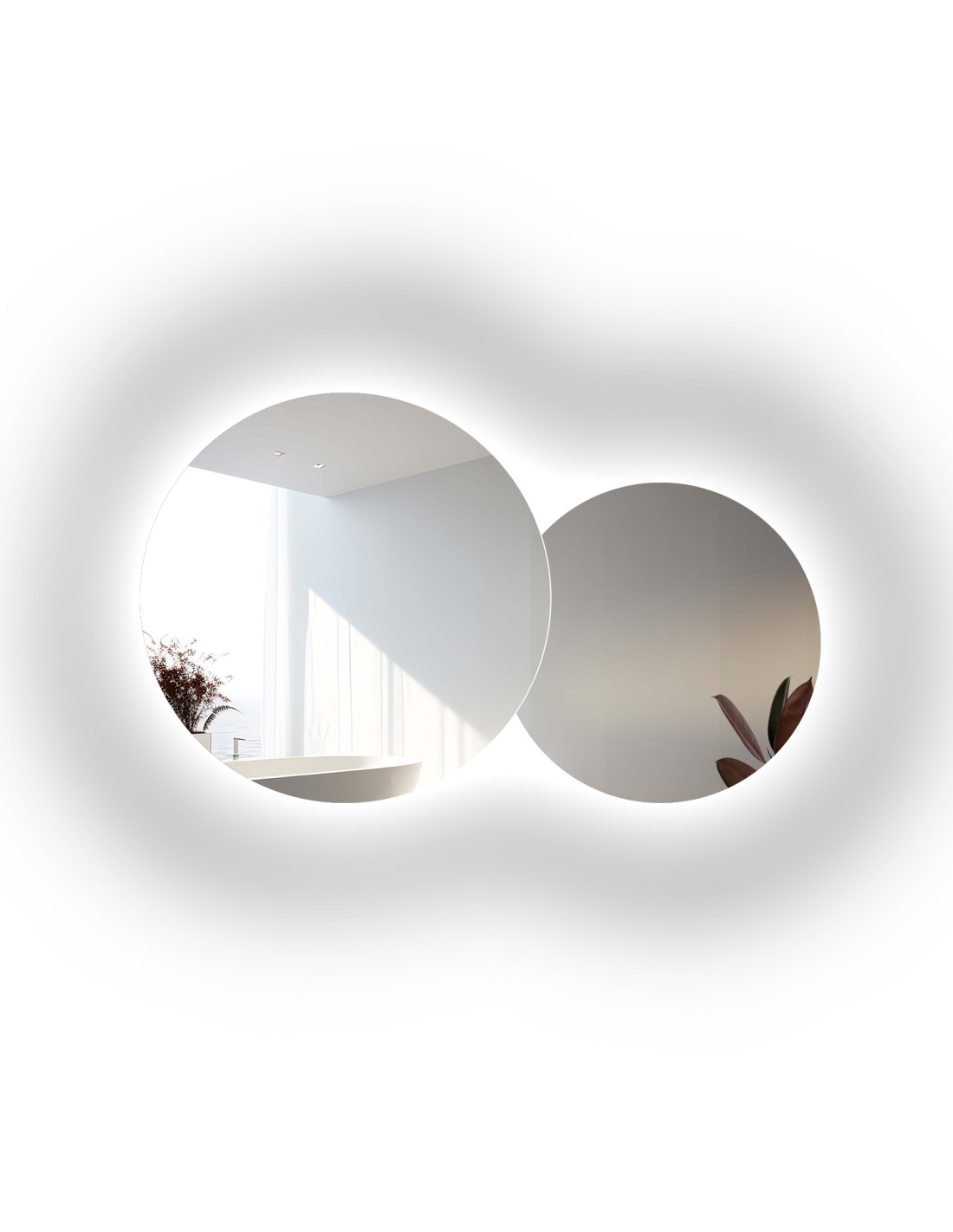 Zestaw luster w standardzie wykonujemy w tafli typu Optiwhite Zestaw składa się z dwóch osobnych luster o szlifowanych krawędziach. Ilość ścięcia wybierasz sam według swojego uznania. Zestaw luster okrągłych UNIVERSE CUT LED I to nowatorskie połączenie pełnego, klasycznego lustra z drugim, okrągłym lustrem ze ścięciem, które idealnie wpasowuje się w większą taflę. Ta unikalna kompozycja tworzy efekt głębi i przestrzeni, jednocześnie wprowadzając nowoczesny akcent do każdego wnętrza. Idealny wybór dla osób ceniących oryginalny design i funkcjonalność.